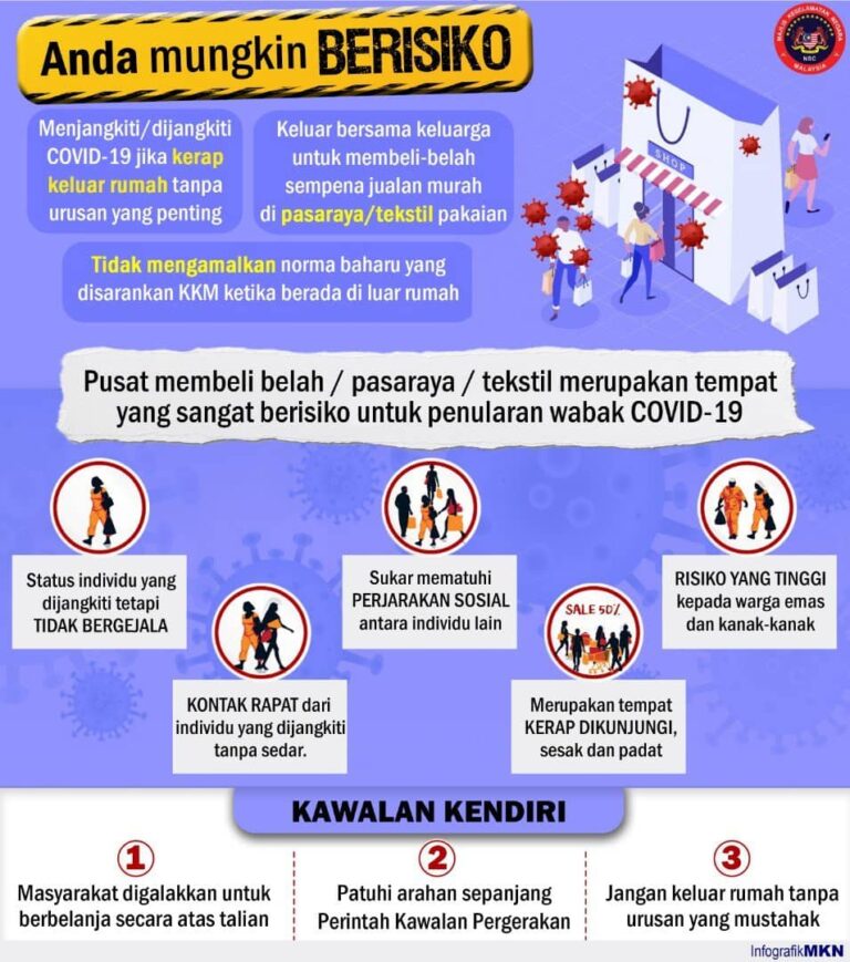 Kita semua mungkin berisiko sekiranya gagal dan tidak mengamalkan norma baharu seperti mana yang disarankan oleh KKM ketika berada di luar rumah. Oleh itu, sila patuhi SOP yang ditetapkan oleh kerajaan dan lakukan kawalan kendiri. Sumber Info Grafik : Majlis […]